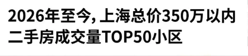 附上2026年至今,上海总价350万以内成交量TOP50小区