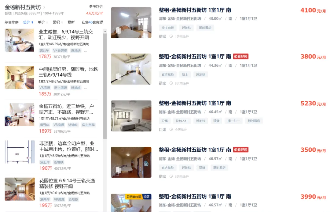 · 金杨新村(浦东中内环间):套均总价约180万元,月租金约4000元,年租金4.8万元,租售比约 2.66%