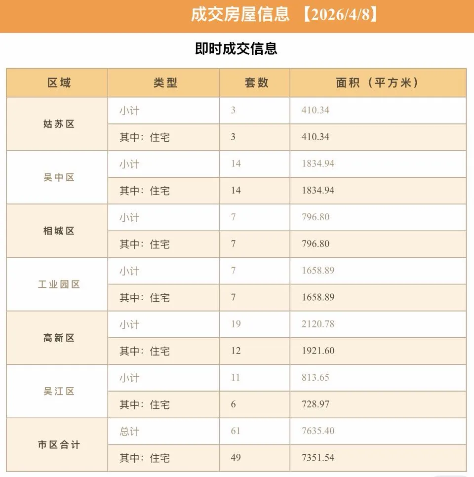 本月截至4月8日(周三),苏州六区住宅累计网签【1638套】,其中二手房累计网签【1344套】、新房累计网签【294套】。