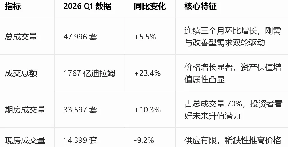 展望2026年全年,迪拜房产市场将延续稳中有涨态势。
