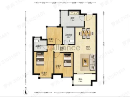 【居室】:3房2厅2卫