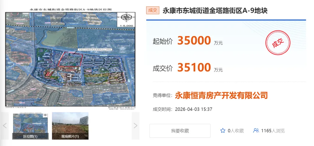 竞得单位:永康恒青房产开发有限公司