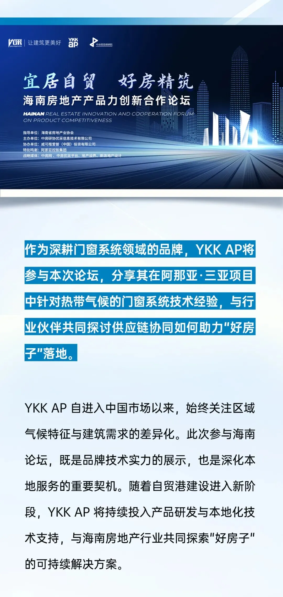 >倒计时2天!YKK AP将出席海南房产论坛探讨复杂气候下门窗难题!