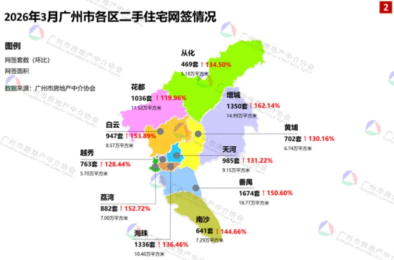 刚刚过去的3月,广州二手房市场交出了一份令人惊喜的成绩单。广州市房地产中介协会最新数据显示:2026年3月(统计周期:3月1日至3月31日),全市二手住宅网签套数达10785套,网签面积105.33万平方米,环比分别巨幅攀升141.38%和129.52%!