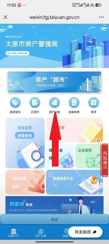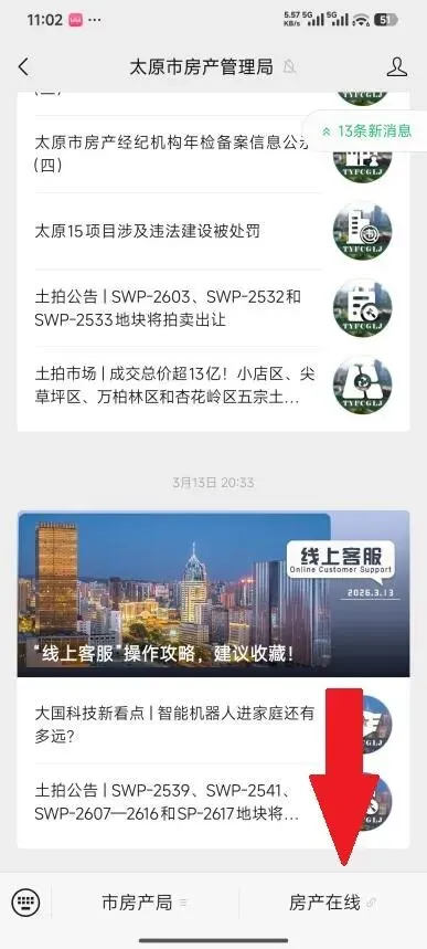 1、微信关注太原市房产管理局,点击房产在线