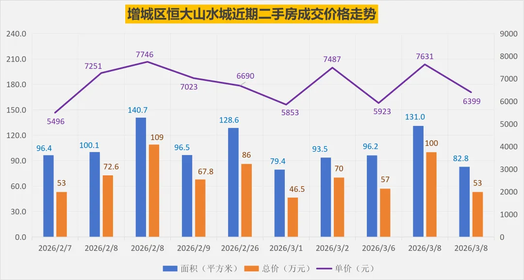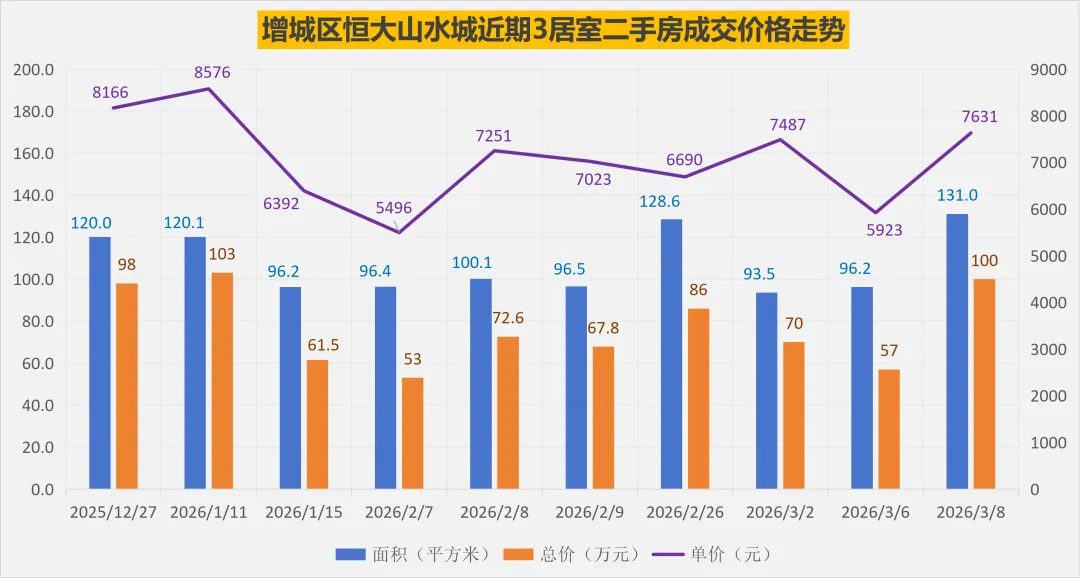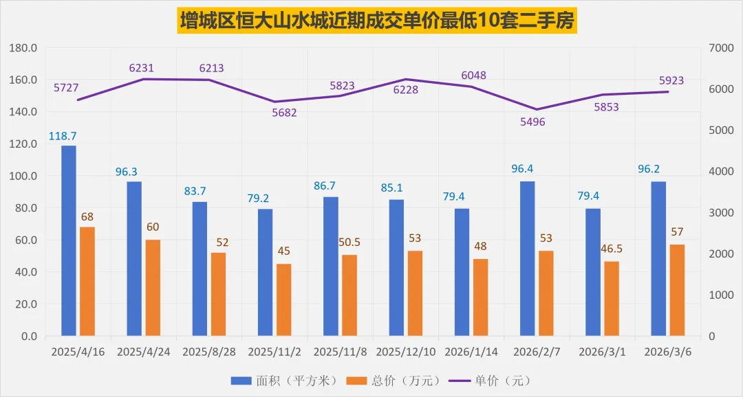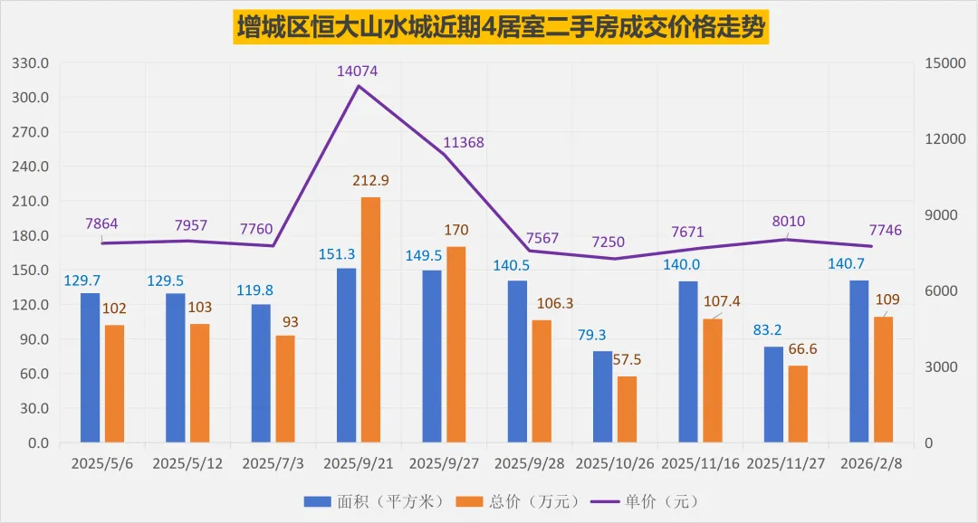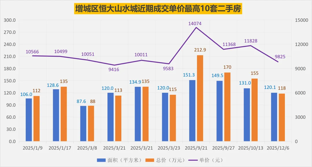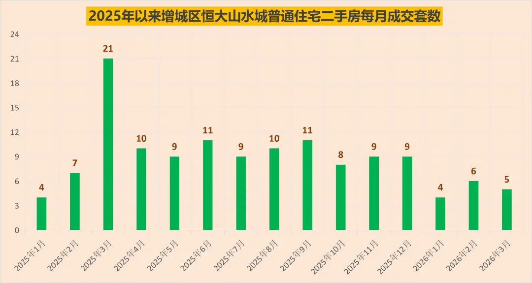 2025年以来,增城区恒大山水城总共成交了133套普通住宅二手房,其中2025年118套,2026年以来成交了15套。