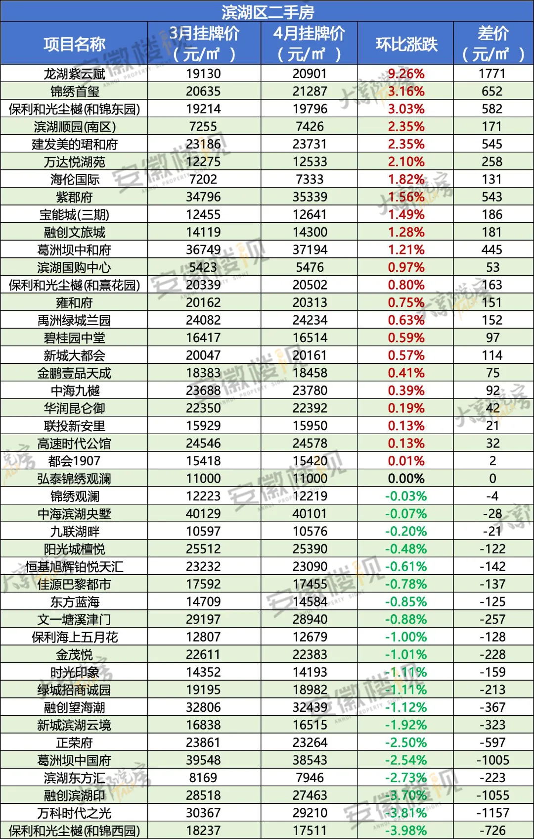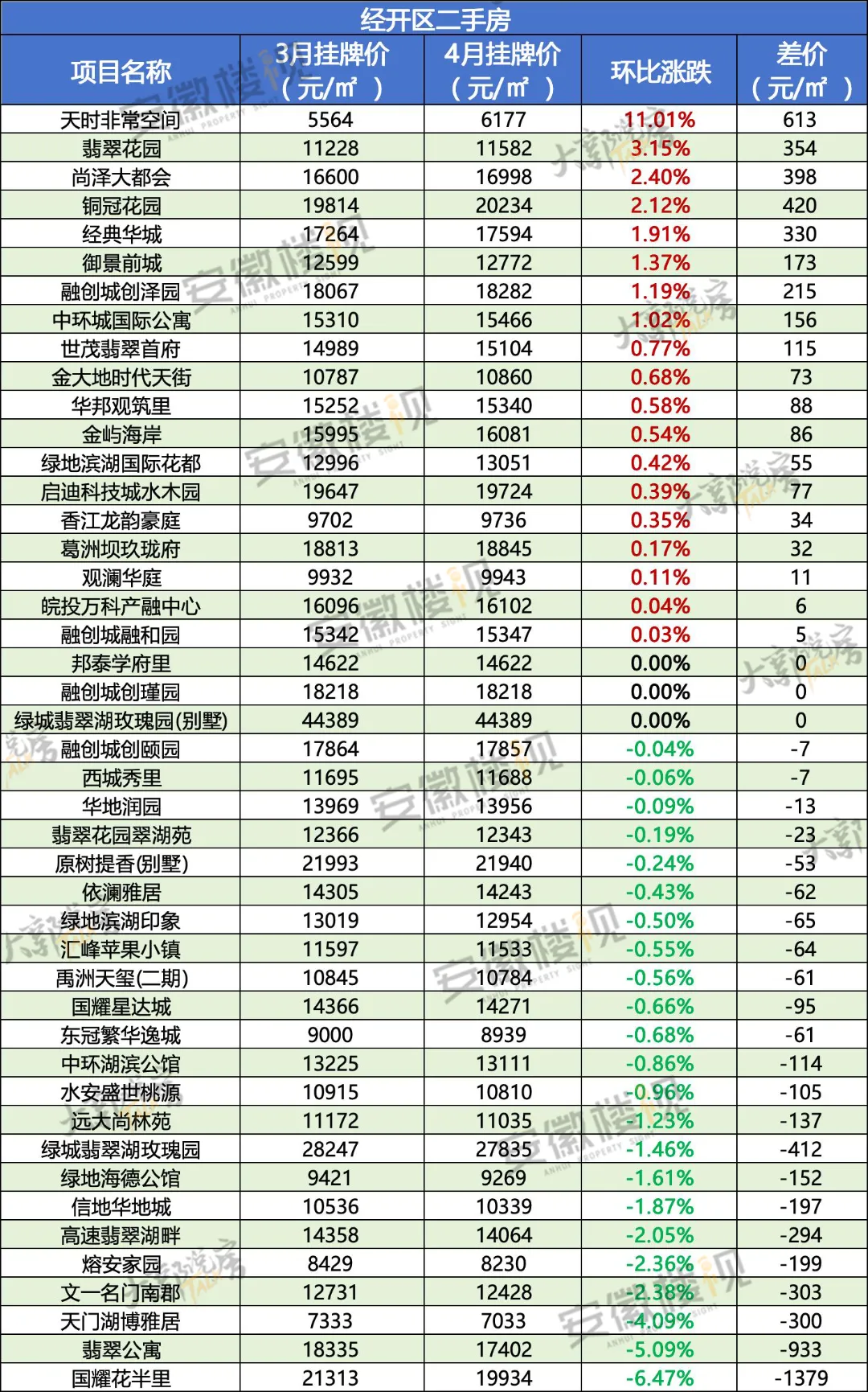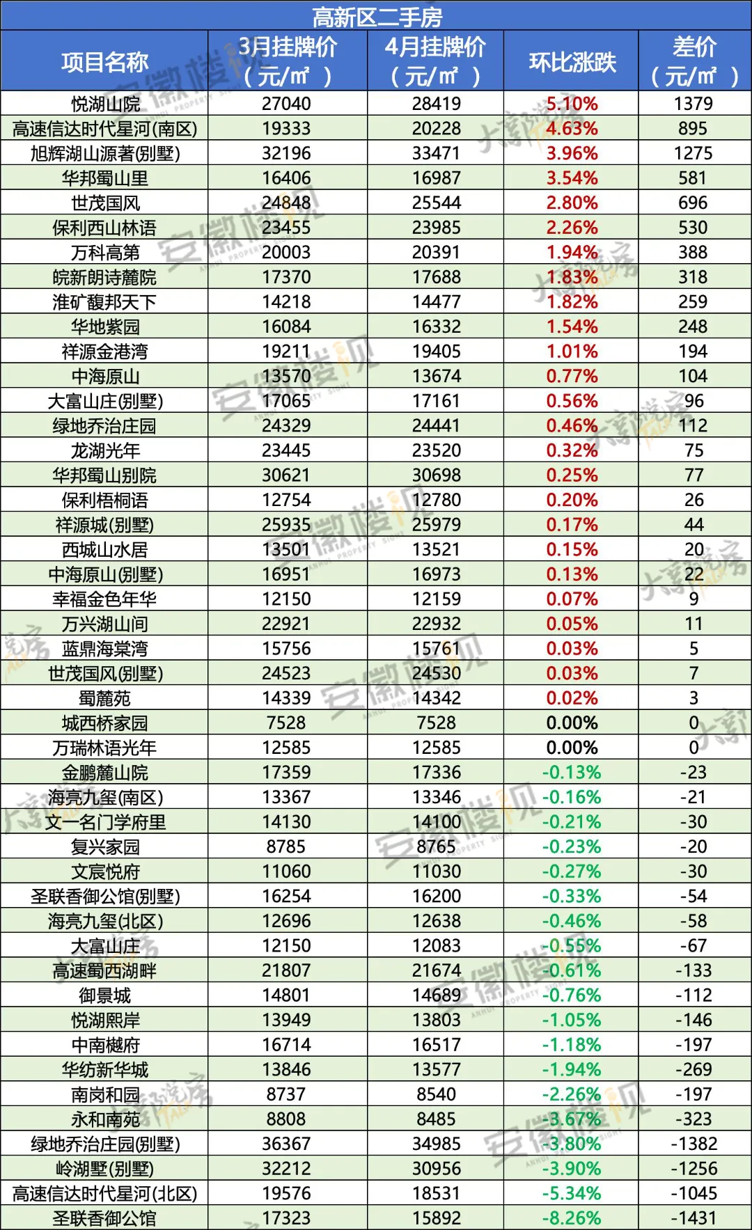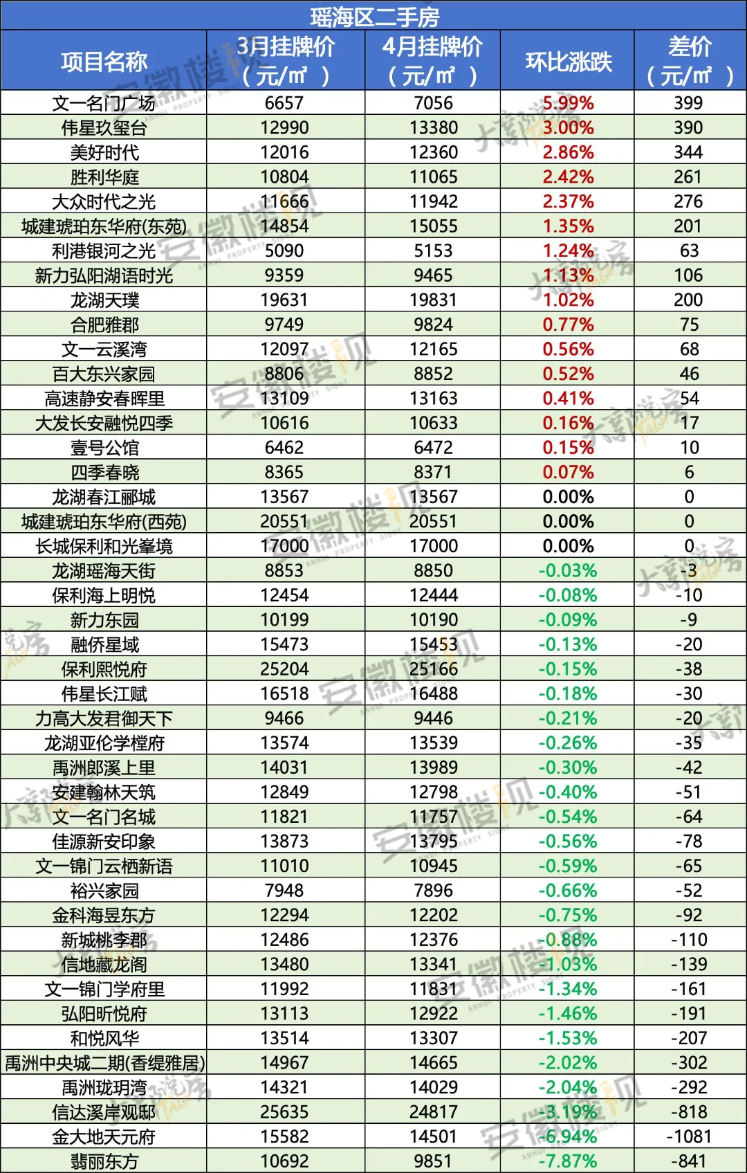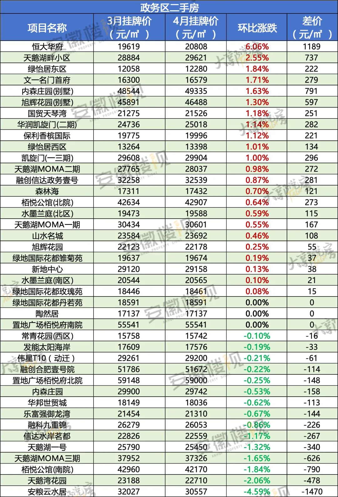 那么,在经历过3月热销,清明假期冷静后,合肥各区二手房最新挂牌价情况如何?安徽楼视统计了合肥9区的超500个小区(大多为房龄为15年以内的房源)的价格涨跌,仅供置业参考。