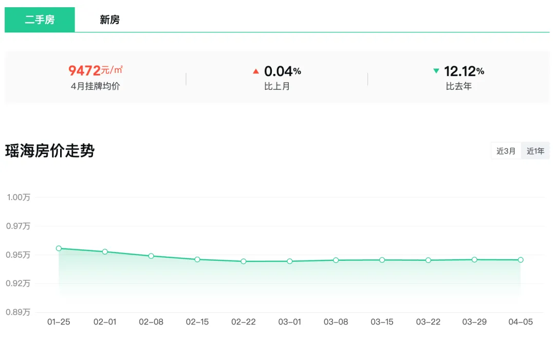瑶海区4月二手房挂牌均价9472元/m²,环比上涨0.04%,同比去年下跌12.12%,这是和新站区唯二挂牌均价低于1万的区域。