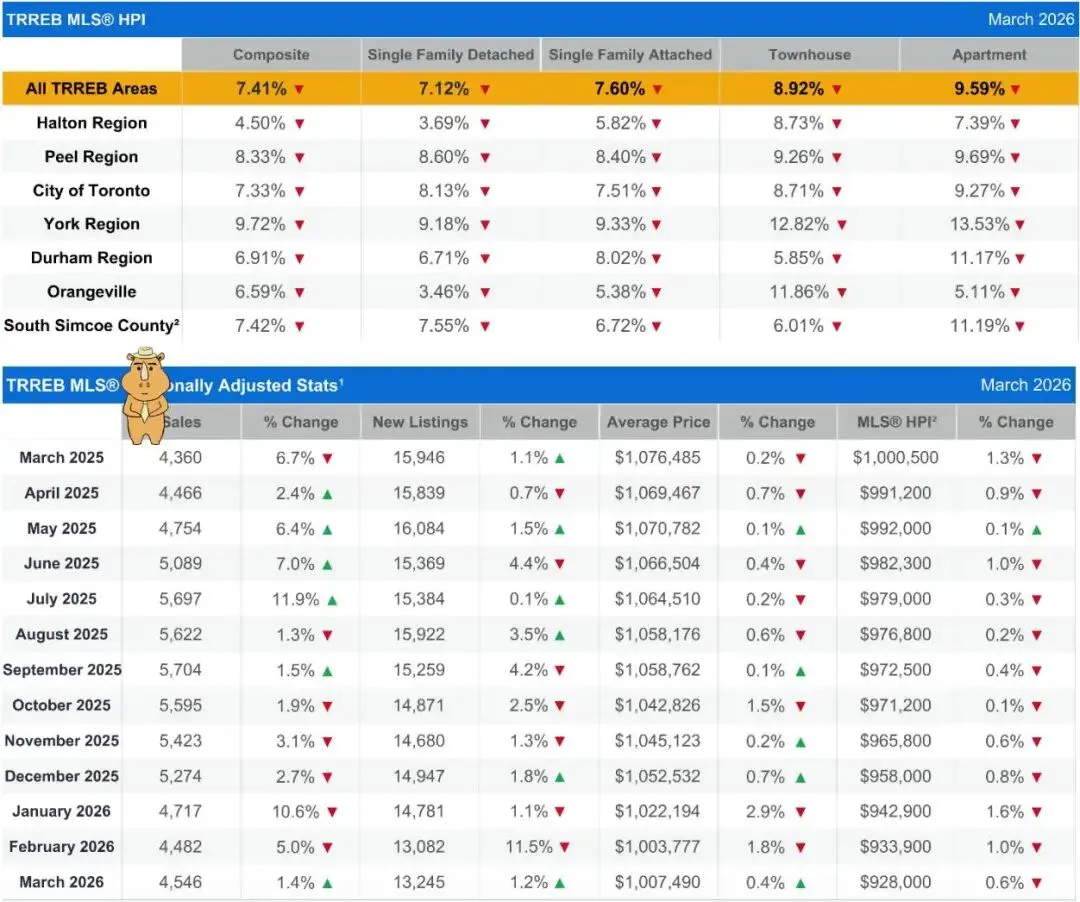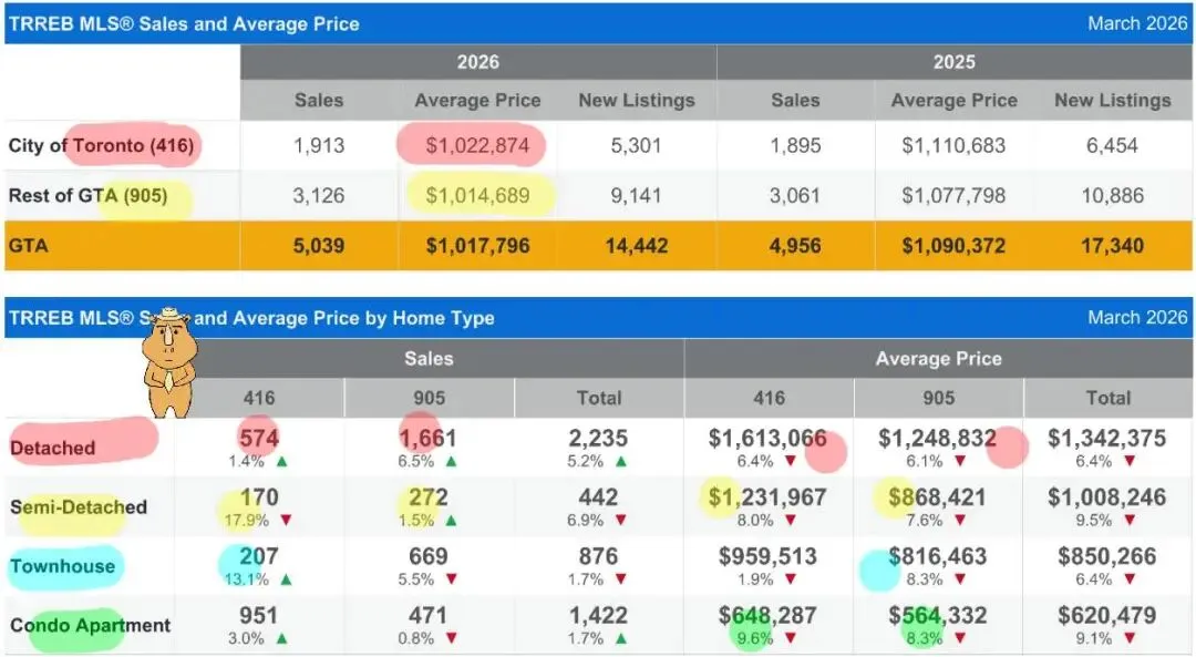 大多伦多2026年3月房产报告 数据对照表