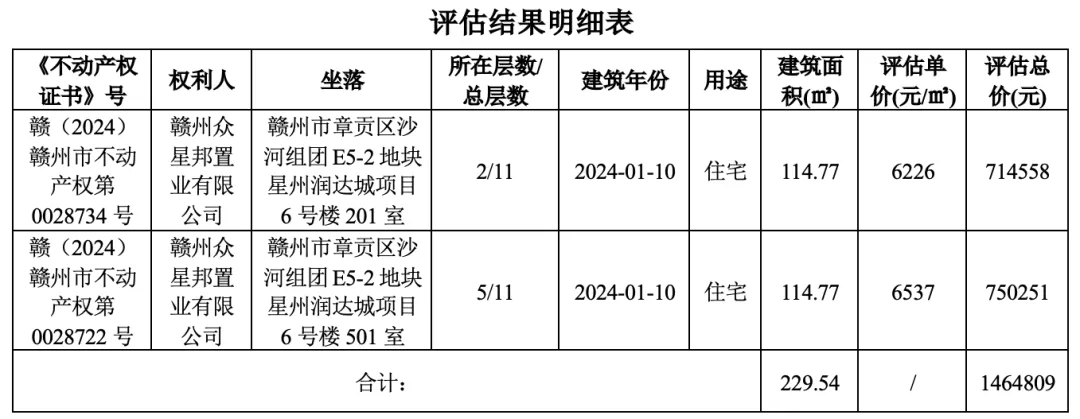 ▲ 赣州星州润达城一期开发商名下2套住宅房源评估信息