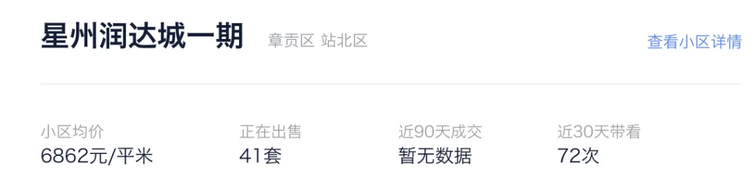我们查了下星州润达城一期贝壳平台的最新二手信息。目前,小区有 41 套房源在售,小区挂牌均价 6862 元/㎡,小区仅成交了 2 套房源。