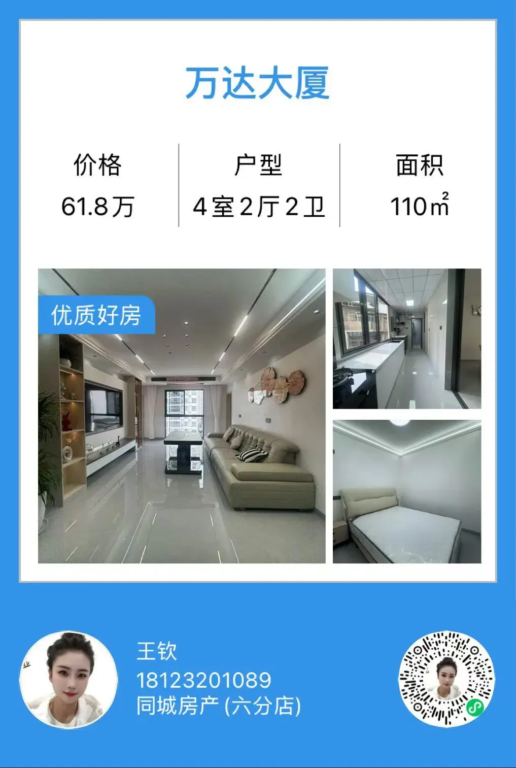 >【万源房产】101小区,4室2厅2卫,总价48.8万,家具家电齐全.