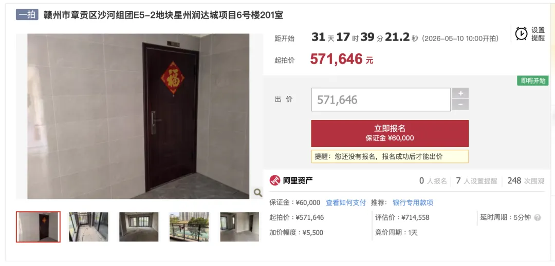 ▲ 赣州星州润达城一期开发商名下2套住宅房源将于5月10日迎来一拍