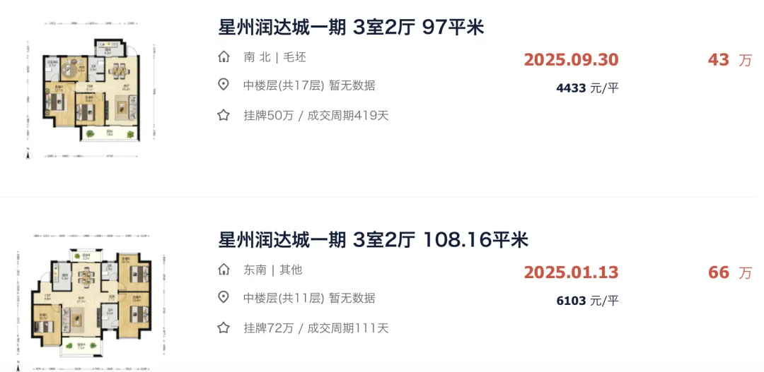 我们查了下星州润达城一期贝壳平台的最新二手信息。目前,小区有 41 套房源在售,小区挂牌均价 6862 元/㎡,小区仅成交了 2 套房源。
