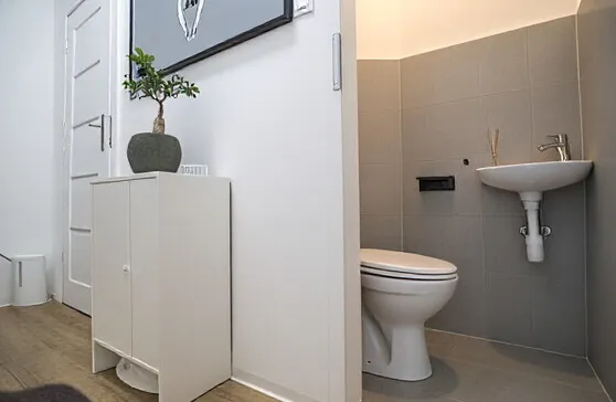 - 干湿分离浴室+步入式淋浴;浴室配有内置淋浴、高品质卫浴洁具、干净的瓷砖和地砖