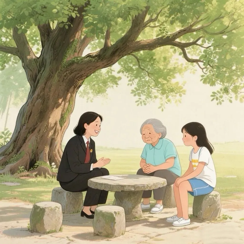 承办法官陈节节发现,这不仅是财产之争,更是亲情之痛。庭审结束后,窗外绿荫下群众纳凉闲谈的笑语给了她灵感,她创新采用“户外调解”模式,将地点选在法庭院落的榕树下。