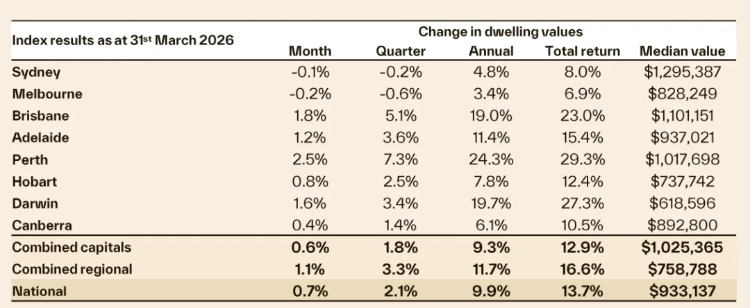 最近,Cotality 公布了 2026 年 3 月澳洲最新房产数据。整体来看,全国房价仍然保持上升,不过市场走势已经不像之前那样一致,而是开始出现越来越明显的分化。