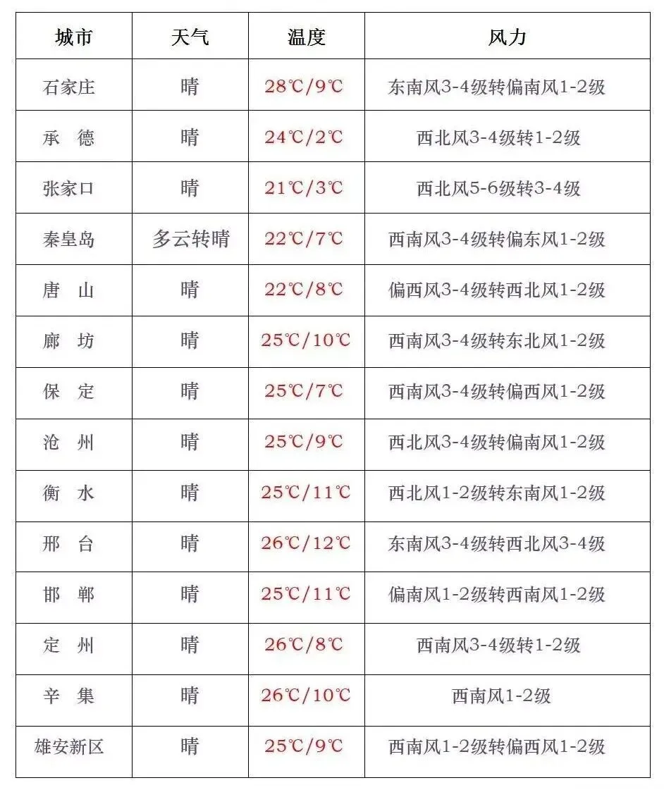 今天白天,唐山、秦皇岛多云转晴,其他地区晴间多云。今天夜间到11日,全省晴间多云。