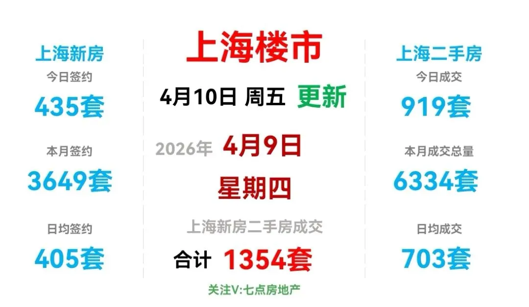 昨日(4月9日,周四),上海新房和上海二手房成交量合计1354套。