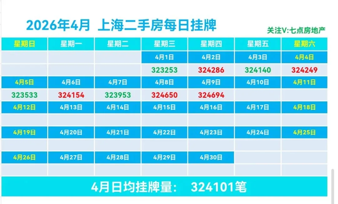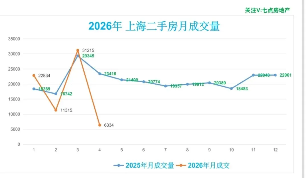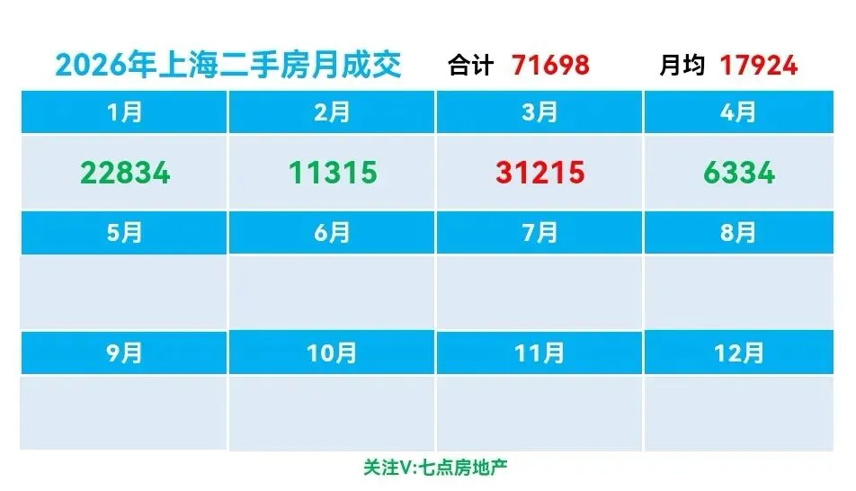 ♻️截止2026年4月9日,2026年上海二手房成交量合计71698套,月均21174套。