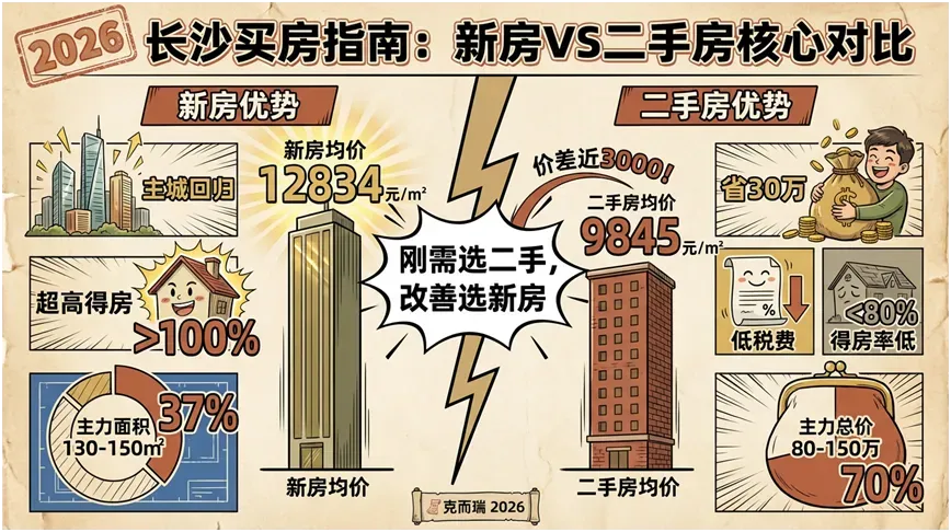 事实上,新房与二手房并非非此即彼的对立选项,而是各有核心优势,适配不同的置业需求。本文从地段价值、产品品质、价格成本、教育配套、交易风险五大核心维度,结合最新市场数据与行业趋势,为你拆解 2026 年长沙新房与二手房的真实置业逻辑,精准匹配不同需求的购房选择。