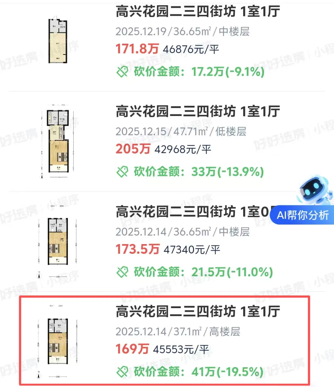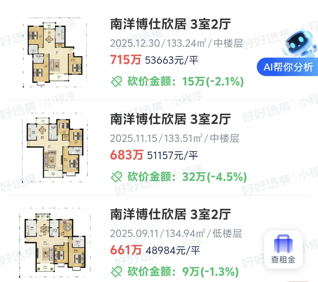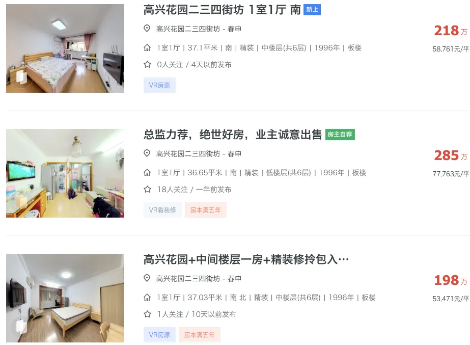 一位经纪人举了个例子。某区一个著名的“老破小”学区房小区,三十多平的单间,去年底有过低于一百八十万的成交。但今年春天,类似房源挂牌价普遍回到了两百万区间。低价房源一出来,很快就被签走。