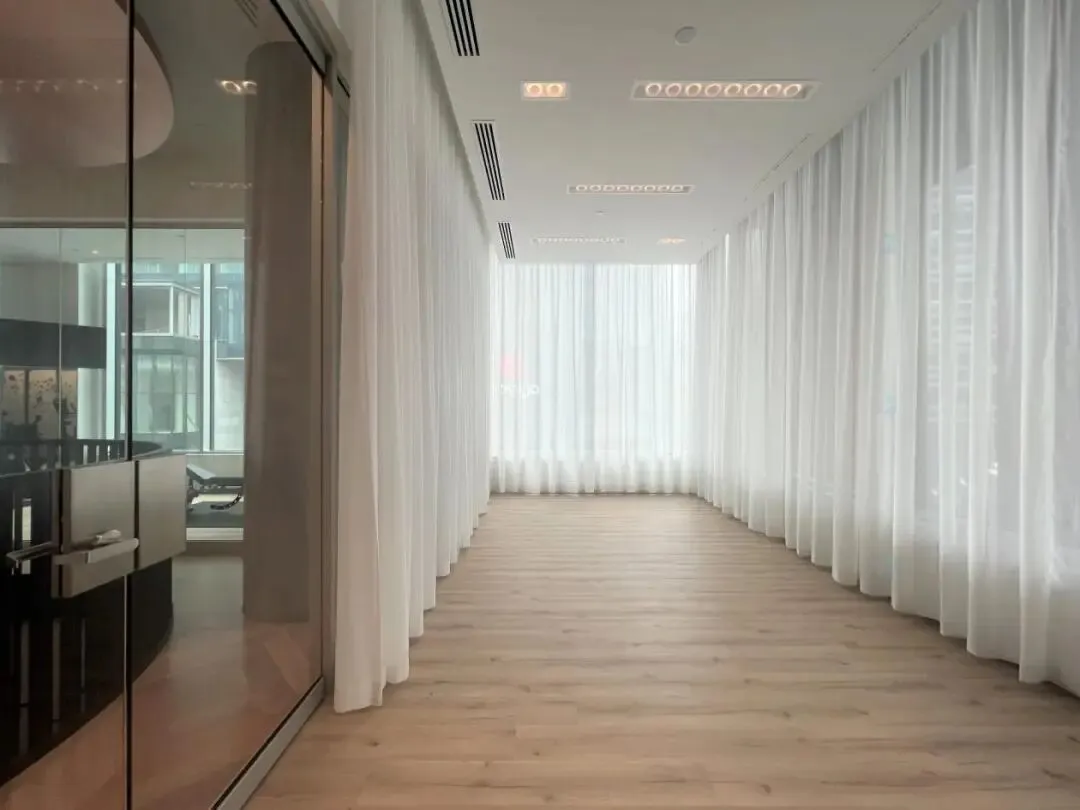 房屋最大亮点在于其全屋南向的落地玻璃幕墙(次卧与客厅大厅均采用),为您构建了一幅270度的动态全景画卷。目光所及,蜿蜒城市河流与远方绵延山峦尽收眼底,日夜光影与四季更迭皆成家中巨幕风景,视野开阔无任何遮挡。