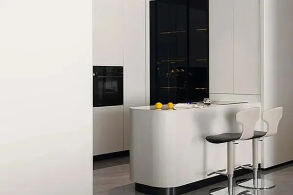 Joyce引导我们来到了家的又一个别致的角落,一处小巧玲珑的吧台。设计师Bea以白色作为了主色调,高高的吧台,辅以了圆角处理,两张白色的高脚椅,与这尔雅的吧台,交相辉映了。当Joyce想来一杯醇浓的咖啡时,她就来到这个俊秀的空间里。一会儿之间,一杯香浓可口的咖啡就此做好了。而当慢慢品味的时候,也饶感到这都市生活的慢节奏,似乎让人顿生了松弛感,这一处吧台,如同一个符号,标记了家的又一独到风景了。