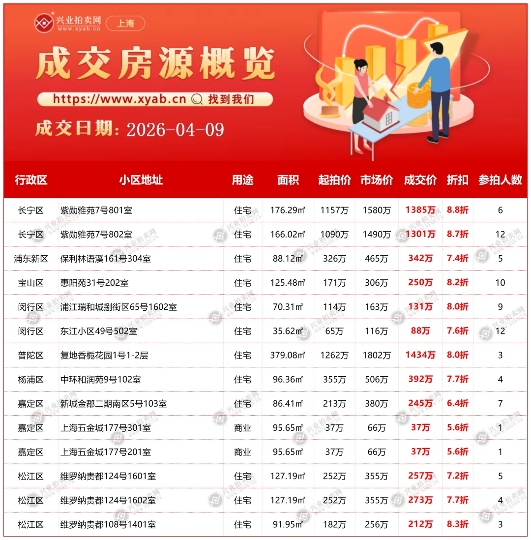 上海拍卖房产昨日成交详情