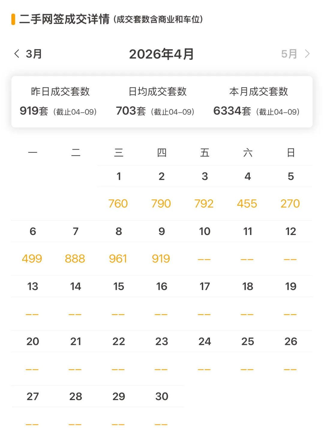 上海二手房最新成交量:昨日(4月9日)网签919套(含住宅、商业、车位等)。