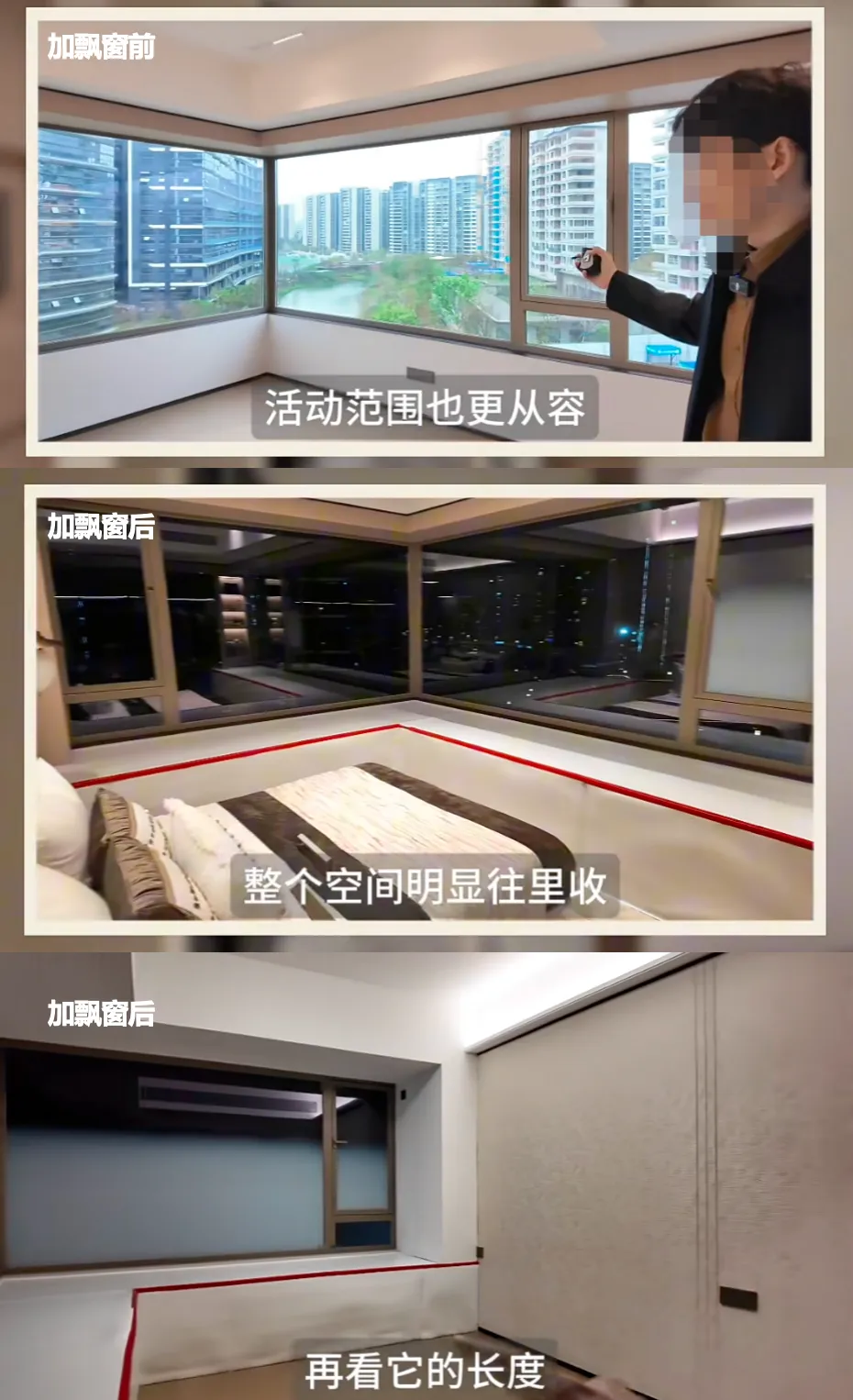 本来飘窗全打的户型,受到新规影响被迫给板房重新加回了800mm的飘窗,视觉上直接从“一个完整的房间”变成“剩下半个房间”