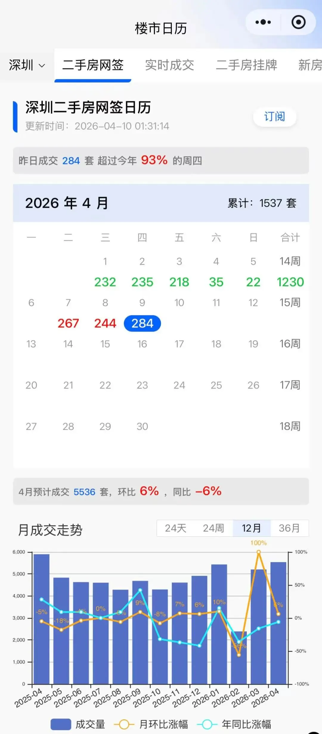 深圳楼市回暖信号强烈!4月9日网签284套,热度超过今年93%的周四。