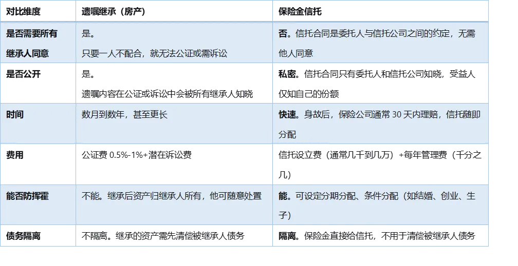 遗嘱不是不能用,而是要知道它的边界。 对于复杂的家庭关系、高价值的资产,遗嘱往往力不从心。而保险金信托,正是为了解决这些痛点而生。
