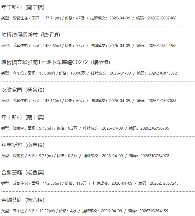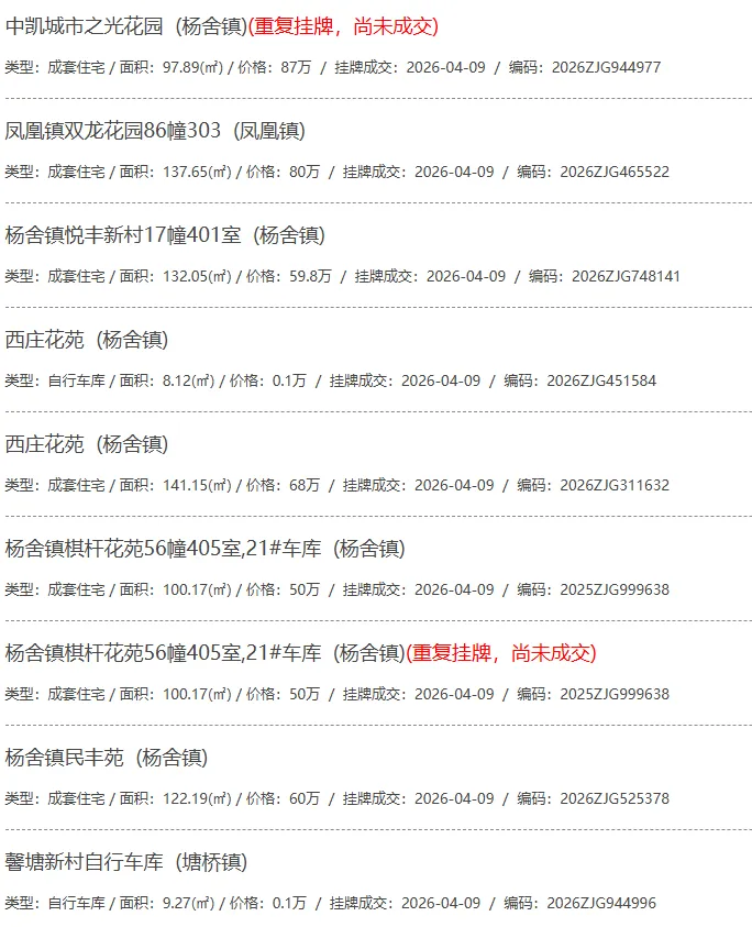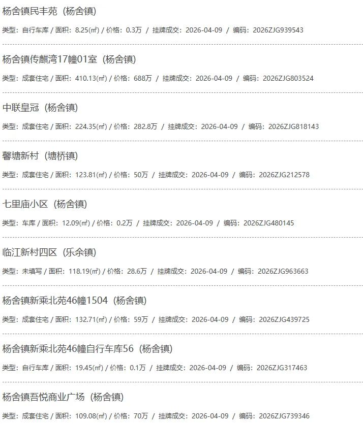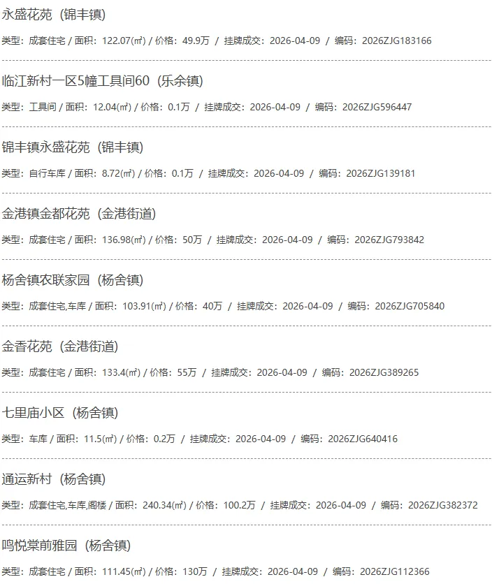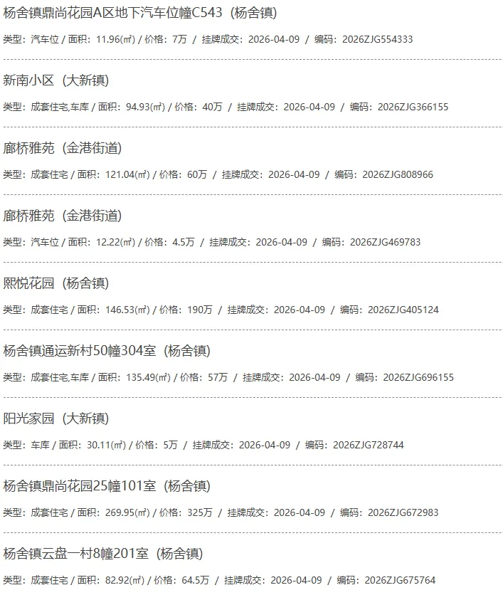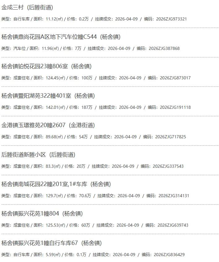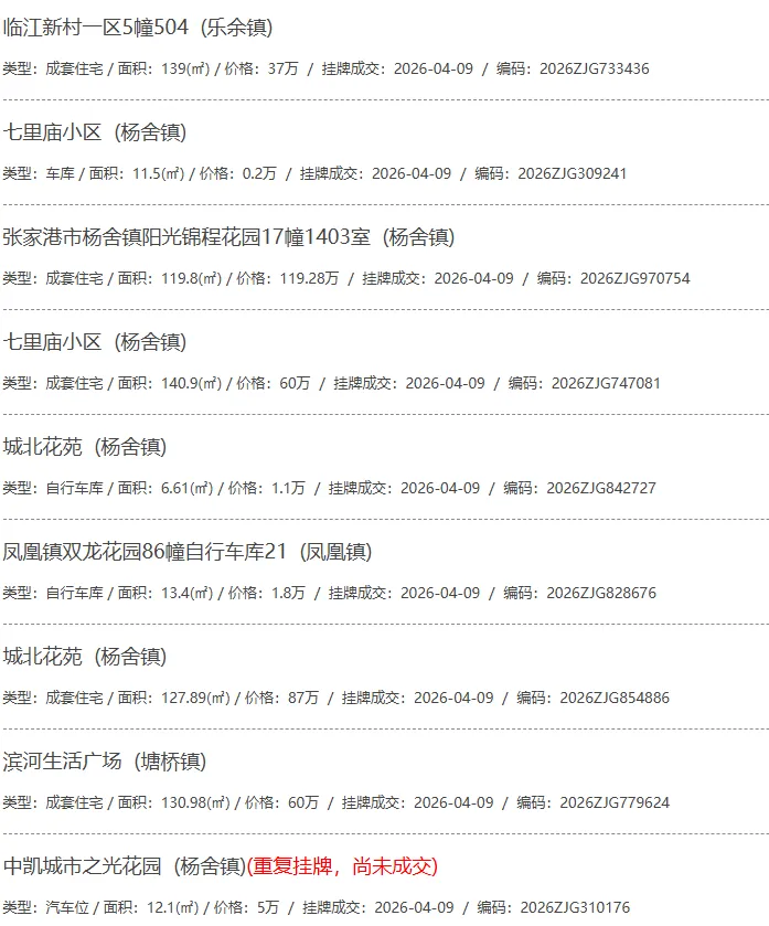 根据张家港房产网(www.zjgzf.cn)整理,(2026-04-09至2026-04-09)总共60套二手房网签挂牌成交(含自行车库及汽车库),数据根据住建局官方网签平台整理,并已同步至各对应小区的成交明细,特别提醒:此处数据及各小区成交数据中凡标注(来自网签挂牌)的,均是根据政府网签挂牌系统整理,价格可能不准,请谨慎采信;并仅作为您买房卖房的参考而非决定依据。以下为数据明细: