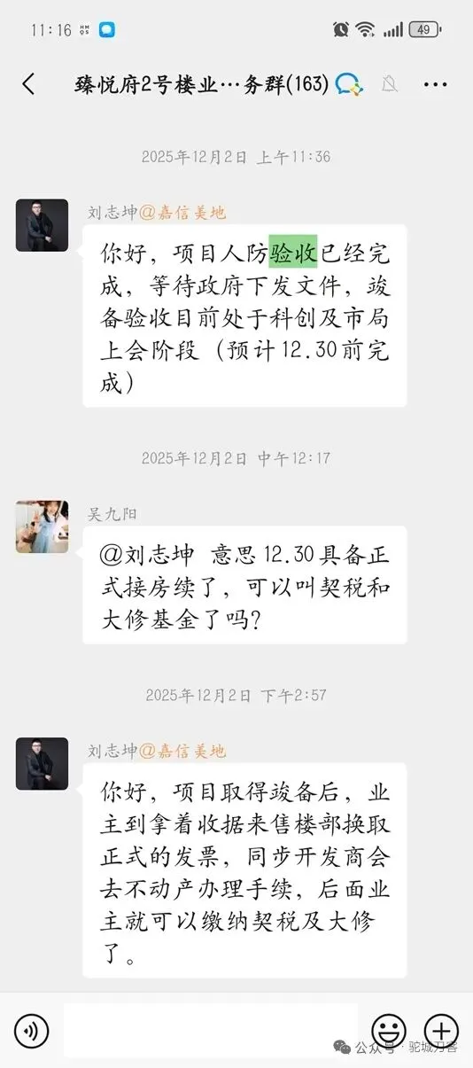 验收本应在2025年8月30日一期交房之前通过,后来又和一期业主说验收会在2025年12月30日二期交房之前通过,现在又计划于2026年4月30日之前验收通过。一拖再拖,开发商毫无信誉,房产证办理遥遥无期。