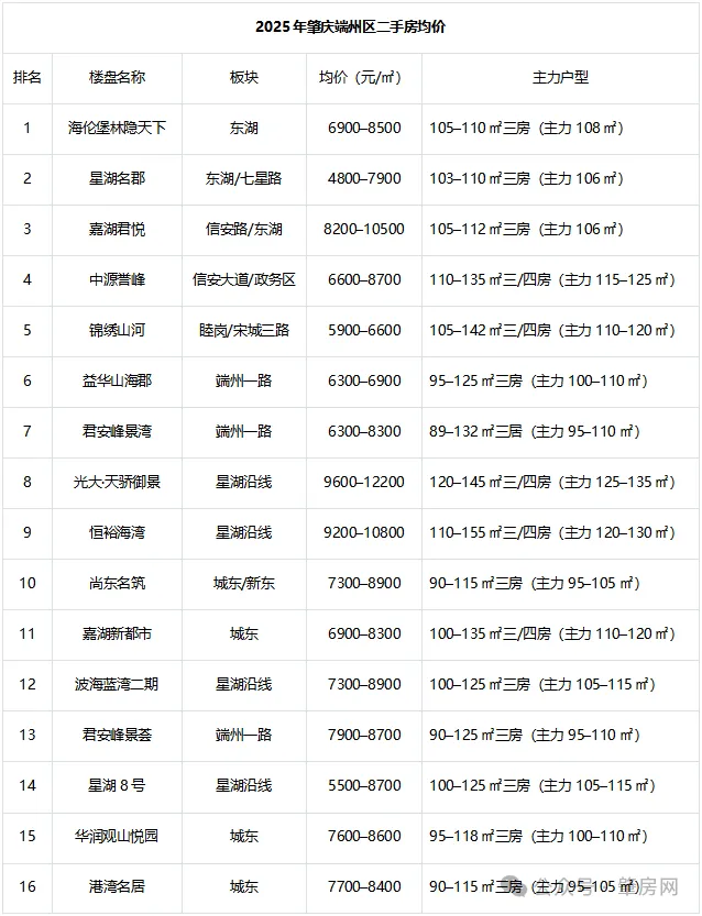 三、2025年端州二手房热门楼盘TOP30(市场口径)
