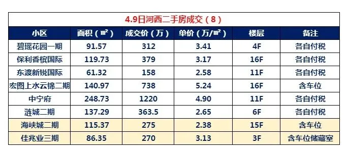 4.9日,河西二手房成交8套,河西中成交6套,宏图上水云锦二期140平,单价达到5.24万/平米,26年新高;河西南成交2套,中宁府又成交了,单价4.9万/平米,这个小区还有部分新房在售,不过楼层没有太多选择。