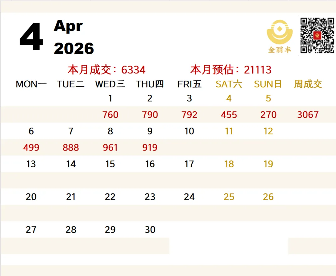 4月份上海二手房成交日历