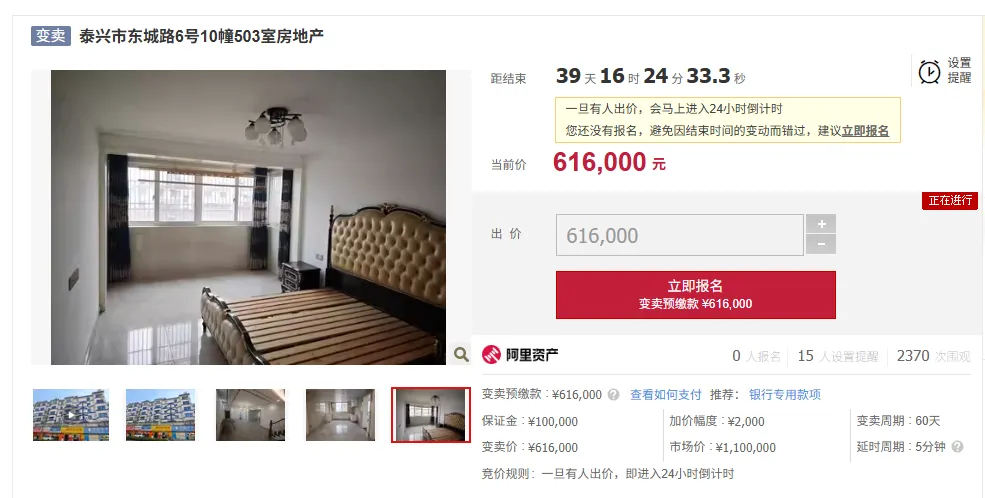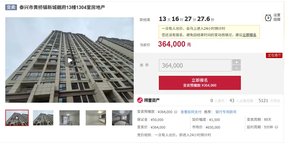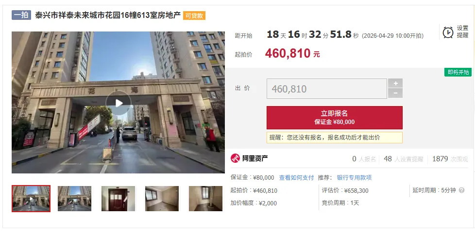 1、泰兴祥泰未来城市花园16幢613室房产即将开拍!这套房产起拍价仅约46万元,评估价65.8万元,相当于 7 折起拍,性价比拉满!目前已吸引48人设置提醒。这套房产是毛坯,建筑面积77.74平方米;总层数17层;所在层数6层。2、泰兴市黄桥镇新城樾府13幢1304室房产正在变卖中!