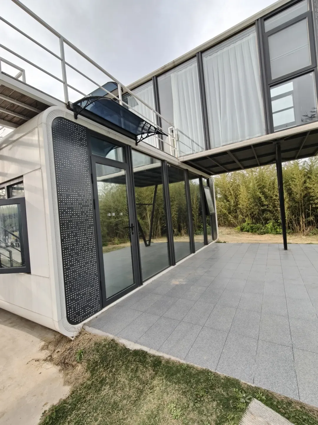 家中有一对双胞胎男孩,朋友家也是男孩,三个五六岁的孩子到了一起,玩疯了就停不下来。在体验了园内的蹦床设施、真人CS游戏之后,三个孩子终于玩累了。谢女士想起路过时看到的一栋两层白色建筑——临水而建,有室外楼梯,便想着看能否租下来,让孩子和大人都能在房间里歇歇脚。