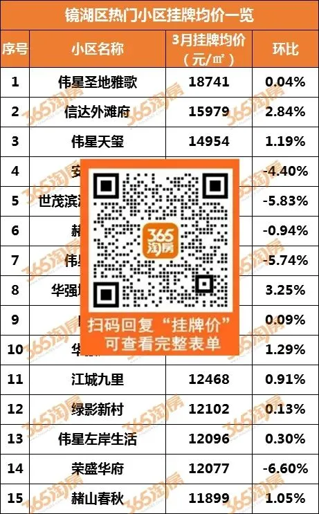 365淘房数据中心/制图为帮助购房者更全面了解当前市场格局,365淘房特别整理芜湖主城区150个热门小区的最新挂牌均价及环比涨跌情况,供您置业参考。