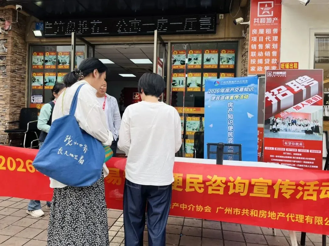 房产交易知识便民服务活动由广州市房地产中介协会发起,通过参与活动的中介机构、政府行业主管部门在户外设置“房地产交易咨询服务点”,为社区居民现场提供有关新房、二手房买卖及房屋租赁的政策解读及房地产交易知识的咨询和答疑,同时派发《二手房(住宅)交易重点环节注意事项》《租房有新规 权益有保障》《信用档案查询指引》《快速产权查册操作指引》《找中介放盘,须两证一委》等有关房地产交易知识的宣传资料,旨在更好地向广大市民宣传房屋交易知识,引导市民选择正规备案经营的房地产中介机构进行房屋租赁和买卖,同时展示协会会员企业诚信自律、规范执业的服务形象。
