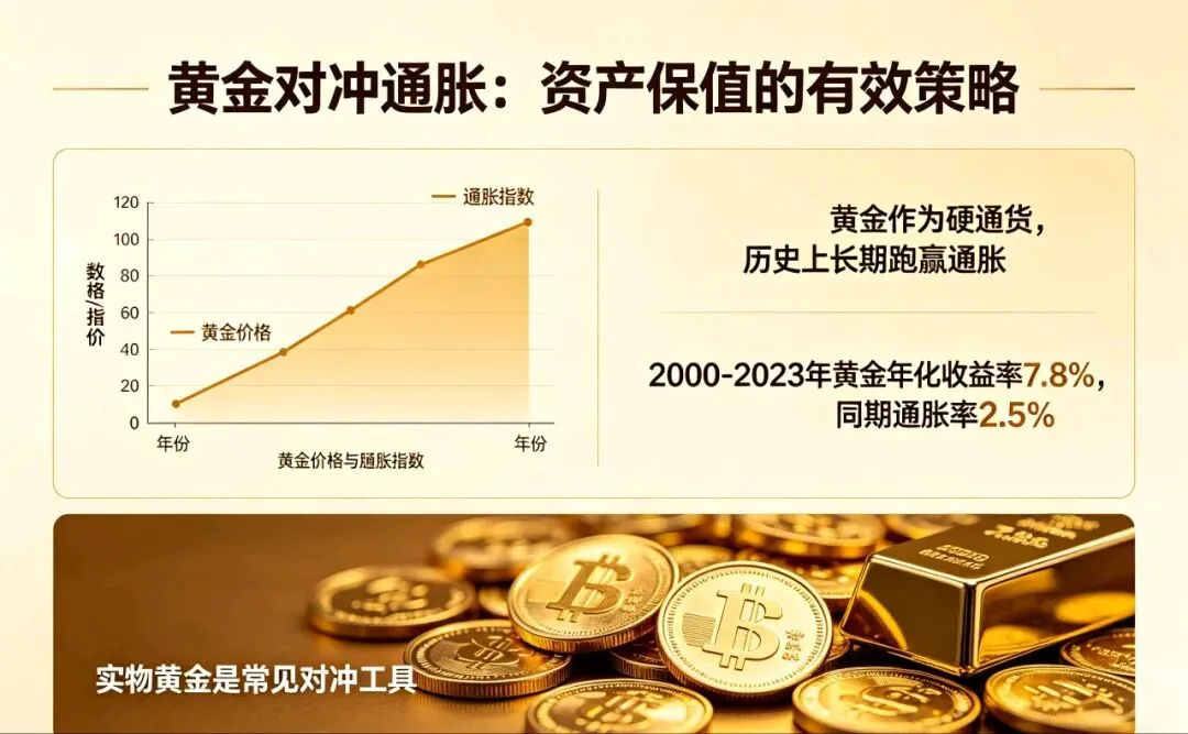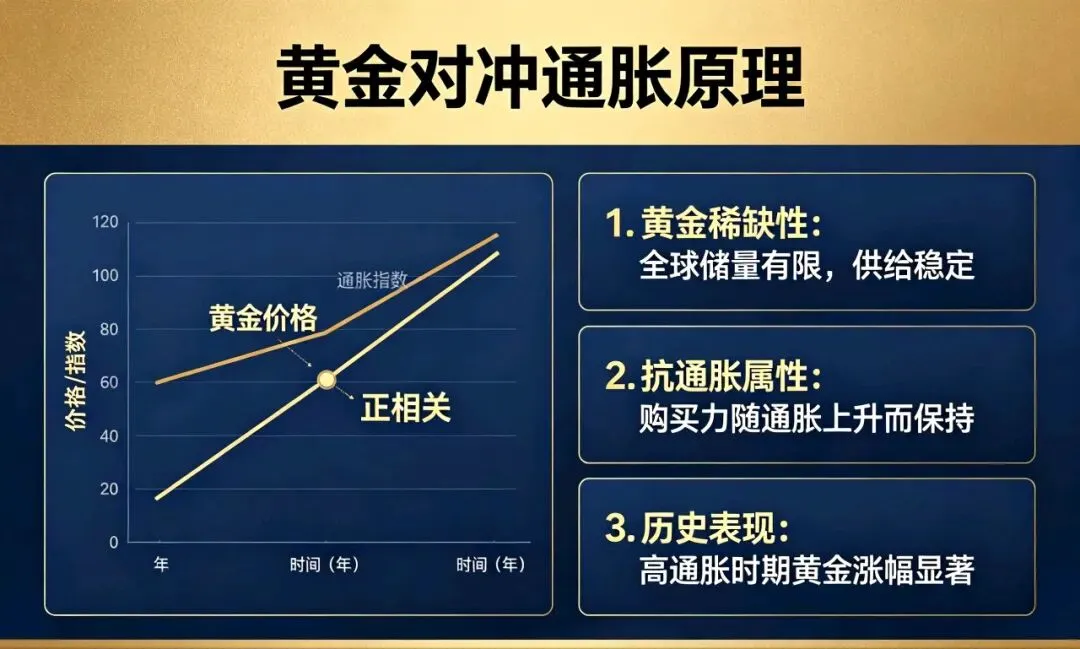 用“稀缺硬资产”替代“易超发纸币”,靠金价上涨抵消货币购买力下跌。