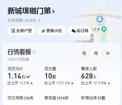 小区势头特别猛,连续几个月登顶光谷东二手房销量第一,3月一共成交23套,成交量集中在五期,是光谷四路板块热度最高的二手房。这个小区是这个片区内房龄比较新的产品,并且总价偏低,加上对口光谷十八小和六初,非常适合光谷的刚需家庭。加上旁边的壹为邻7月30号就会开业,也填补了板块商业的空白。两个绿地的项目3月在光谷真是杀疯了!绿地光谷星河绘胜在价格便宜,80万出头能买个三房,对口光谷十七小和光谷一初,但是十五初已经开建,后续肯定会变动,加上板块热度高,卖的好也在情理之中。和光谷中心城最热门的项目万科璞拾光屿一街之隔,万科璞拾光屿是精装1.6万元/㎡起,188和璞拾光屿相同的区位,但是188的单价仅1.1万元/㎡左右,对于预算有限的小伙伴来说,自然是一个很不错的选择。和188紧挨着,成交量也很不错,房龄虽然老,但是架不住便宜,总价50多万能在光谷中心城置业,地段位置学区都很好的,只有朗诗里程可以选择了。价格微跌,但是碰上了二手房交易的高峰期,成交量也活跃起来了,是这个片区里二手房成交单价比较低的小区。成交的大部分是大户型的产品,光谷中心城改善项目可以选择的不多了,汉韵公馆可以选择的好楼层不太多,洺悦天玺和翡丽天玺所剩的房源也不多了,元庐的价格又偏高,创新天地的品质以及价格性价比算是非常高的,那么改善的客群目光自然就落到二手房来了。插播一下:创新天地五期最快五月底会有动作,猫叔已经提前知道了案名,大家有想了解的可以私信我获取资料。这个片区的二手房3月成交都很猛,奥山府这个小区的房龄还比较新,单价在9千元/㎡左右。这几个月价格一直在阴跌,性价比很高,跟创新天地一样,光谷的改善项目可以选择不多了,中建光谷之星的品质各方面都很出色,适合置换或者首次改善的家庭。卖的好也情有可缘,因为在左岭板块基本上处于一个无房可选的情况,现在的价格跟最高峰的1.5万元/平左右的已经是腰斩的情况了。之前都是光谷二手房的顶流,但是也扛不住周边两大神盘的降价,不过B区的这套成交的别墅,成交价520万,是光谷东今年成交的最高价。说实话,这轮回暖,跟过去那种“抢到就是赚到”的狂热完全不一样。