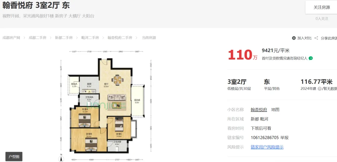 2026年04月03日,【那坊归心】成都龙泉驿东安湖存量房(二手房)华润未来之城三期建面119平套三报价200万,是否适合90后?
