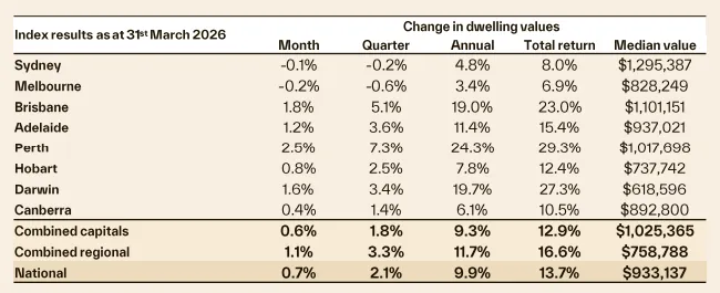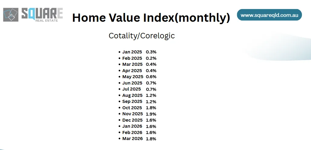 Cotality 最新房产数据4月1日已经发出来了,在这里分享一下。我们也顺便分享布里斯班过去15个月的房产增长数据。