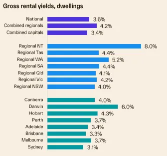 租售比方面,偏远地区的表现更好。布里斯班的毛租售比为:3.3%。