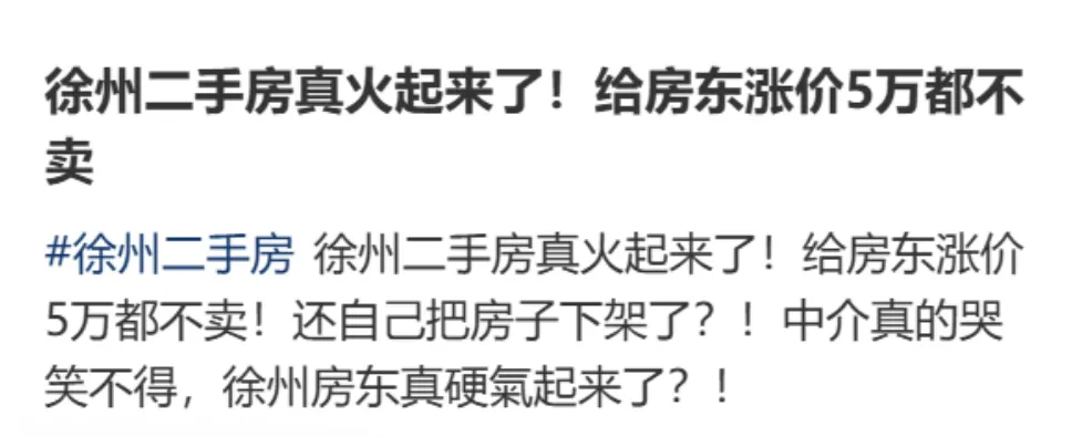 有徐州的中介在小红书上发帖说:“给房东涨价5万都不卖!还自己把房子下架了!”