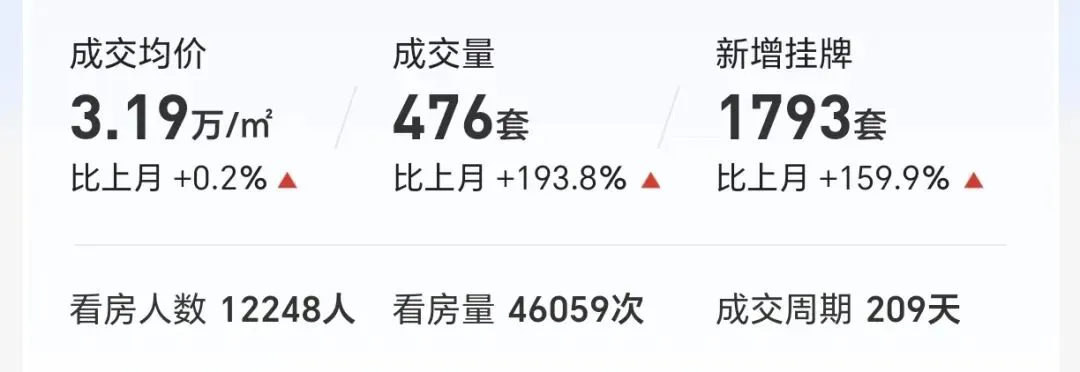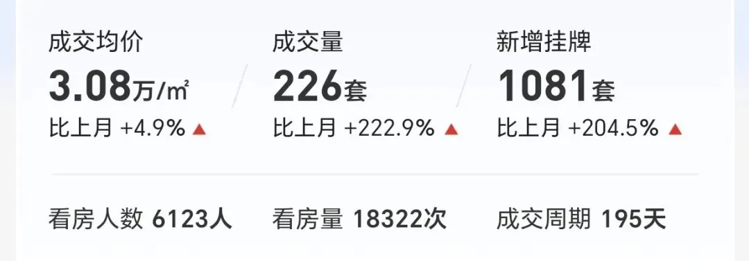 (1)本月二手房成交均价3.08万/平,环比上涨约4.9%;(注:成交均价——即统计日内,二手普通住宅的成交总价/成交总面积。)