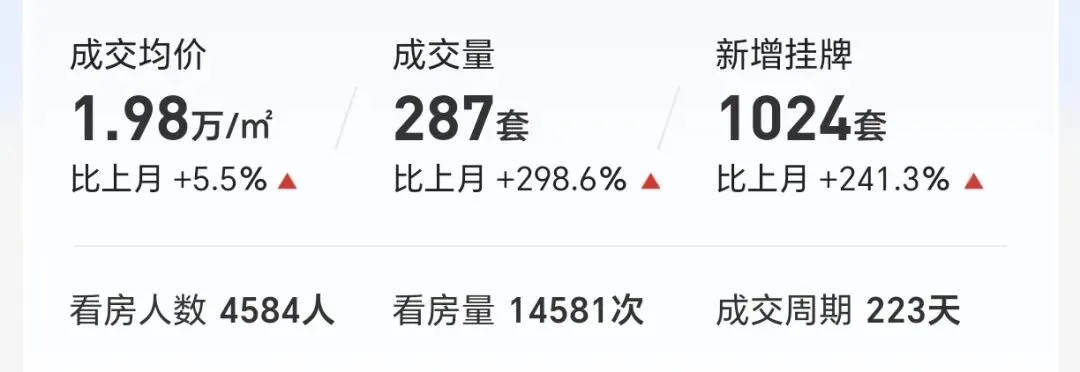 (1)本月二手房成交均价1.98万/平,环比上涨约5.5%;(注:成交均价——即统计日内,二手普通住宅的成交总价/成交总面积。)
